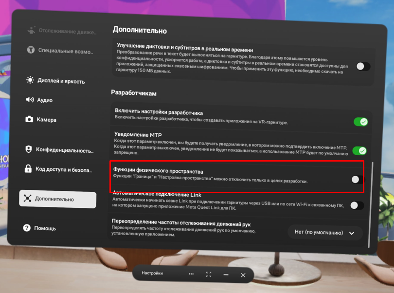 Экспериментальная функция, доступная на шлемах Meta при наличии VPN соединения на роутере